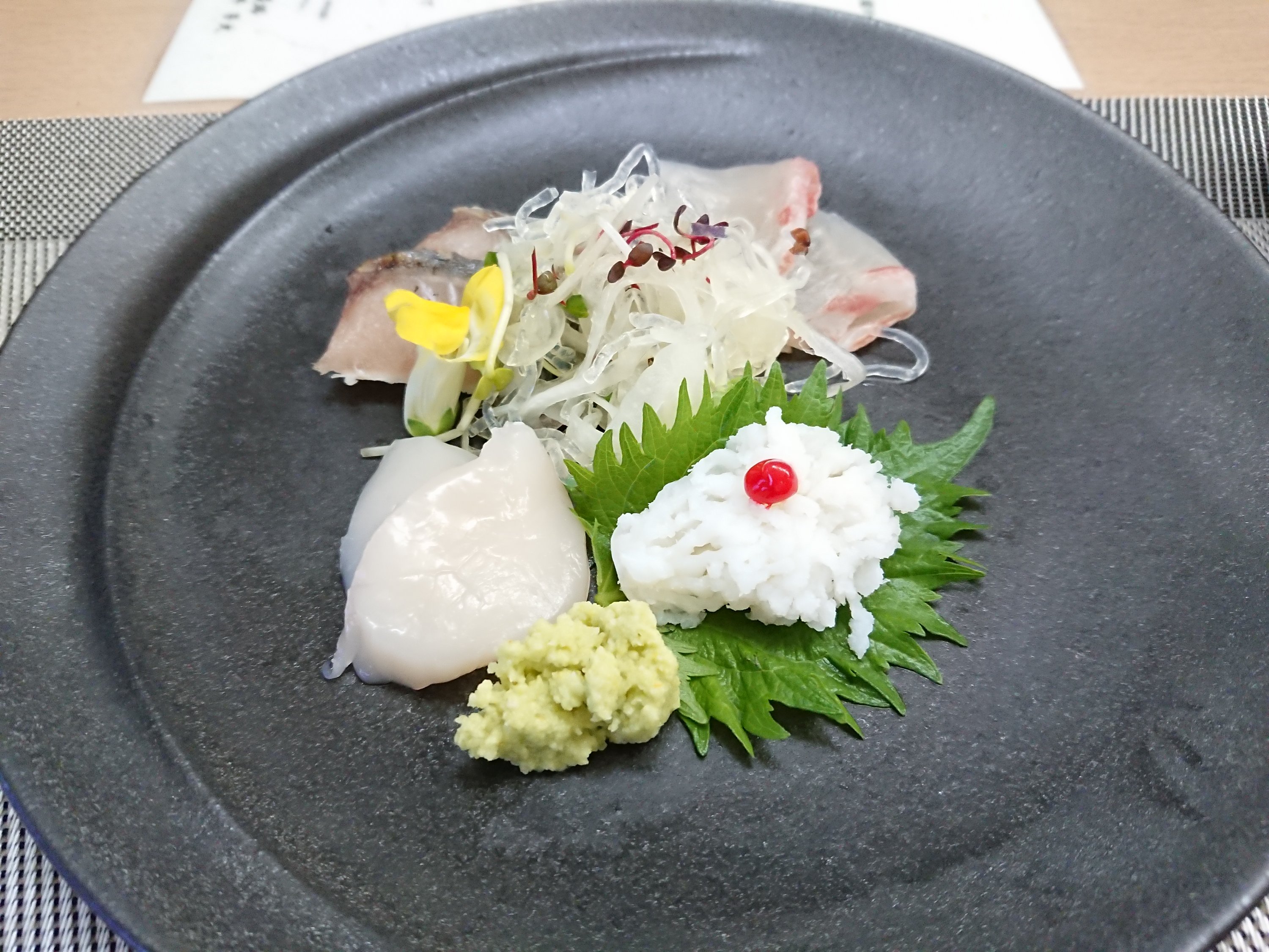 前菜 お造り4種 料理長からのサプライズプレゼント。触れるとトゲが反応するほど新鮮で、人生で一番美味しいウニでした! 鱧のパスタ めかぶ麺 鱧の揚げ物 淡路牛のしゃぶしゃぶ。これは息子に食べてもらいました。 地産のお米です スイカ入りのゼリー 外は台風ですので、家族で卓球やカラオケを楽しんで過ごしました。4人の子供達にとってカラオケは人生初の体験でした。秦基博やスキマスイッチなどを親子で合唱しました。良い思い出になると思います。